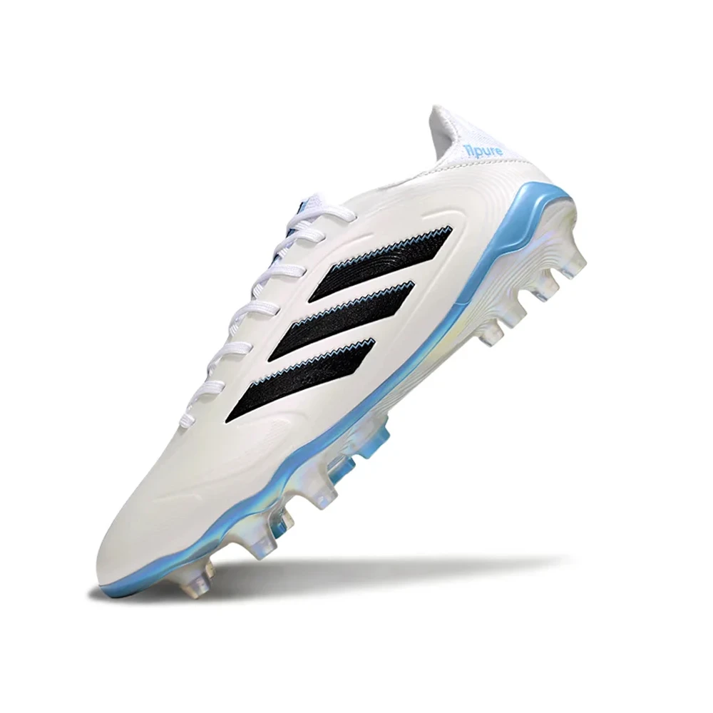 Step up your performance on the field with the Adidas Copa Pure 3 Elite FG Firm Ground Soccer Cleats in Beige, Black, and Blue. Designed for elite athletes, these cleats offer a snug fit, responsive cushioning, and exceptional ball control. The firm ground outsole provides superior traction on natural grass, while the premium synthetic upper ensures both comfort and durability. Ideal for players seeking high-end performance at an affordable price, the Adidas Copa Pure 3 Elite FG is a perfect blend of style and function.