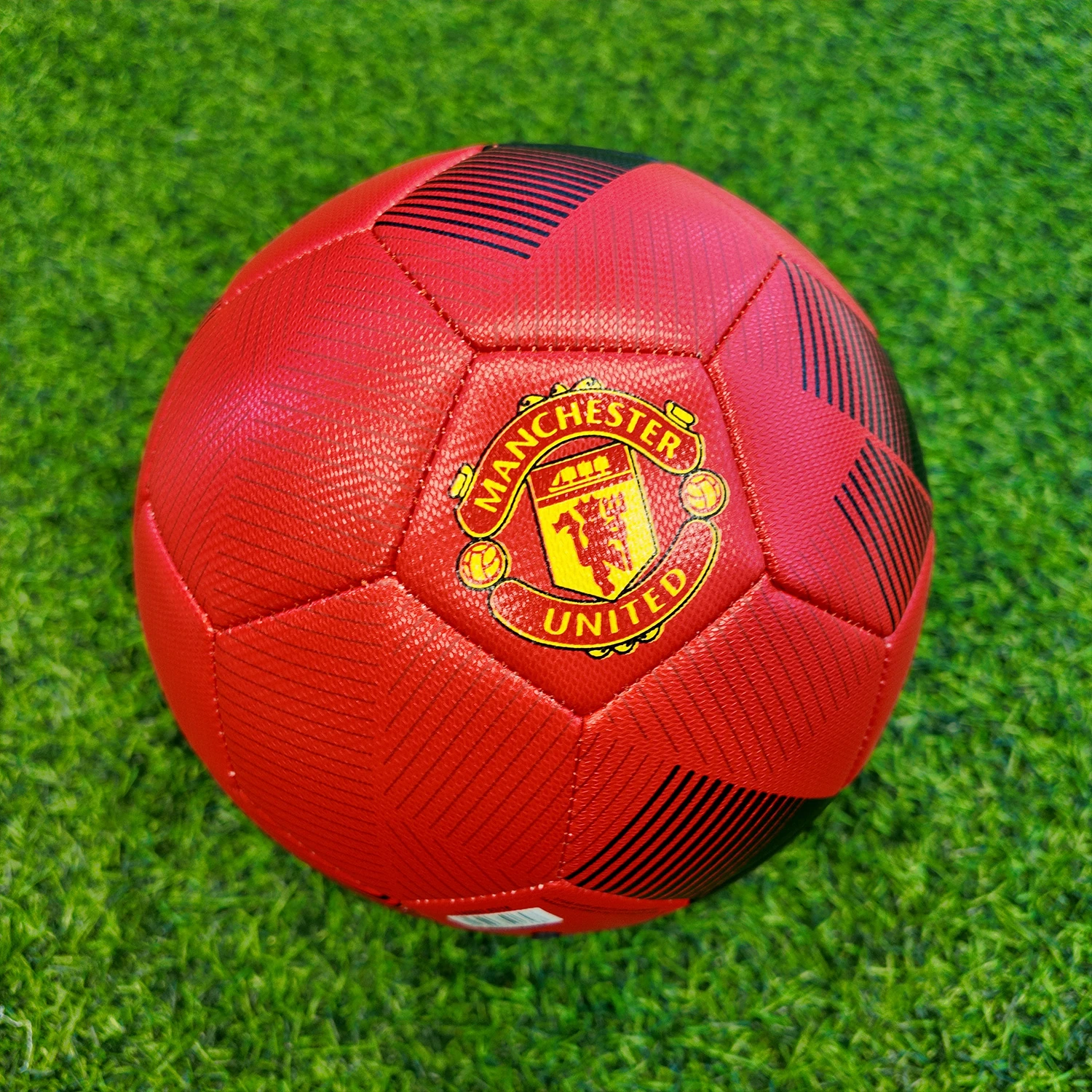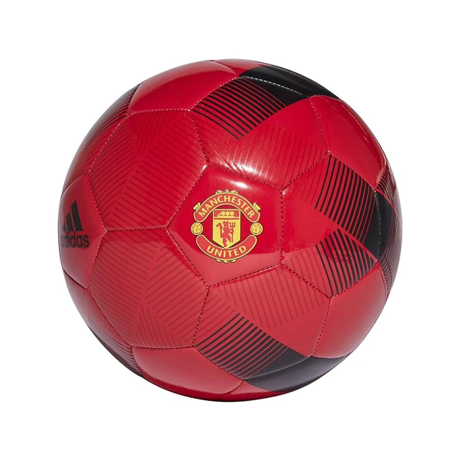 This soccer ball shows off a design inspired by Manchester United's famous home jersey and adidas' lightning-quick X footwear range. It has a machine-stitched TPU cover for durability, while a butyl bladder ensures it stays inflated for game after game.