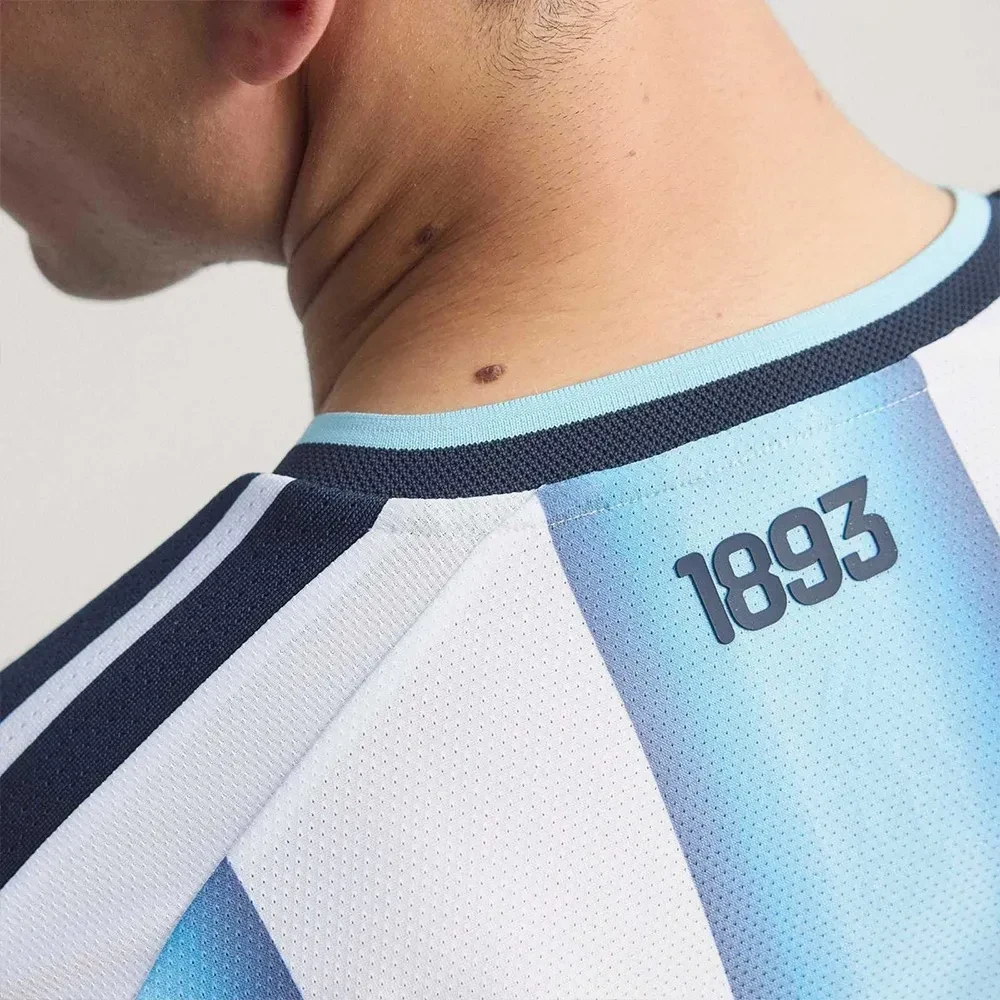 Tribute: The gradient shading on the blue stripes pays tribute to the jerseys worn during Argentina's three World Cup victories in 1978, 1986, and 2022.