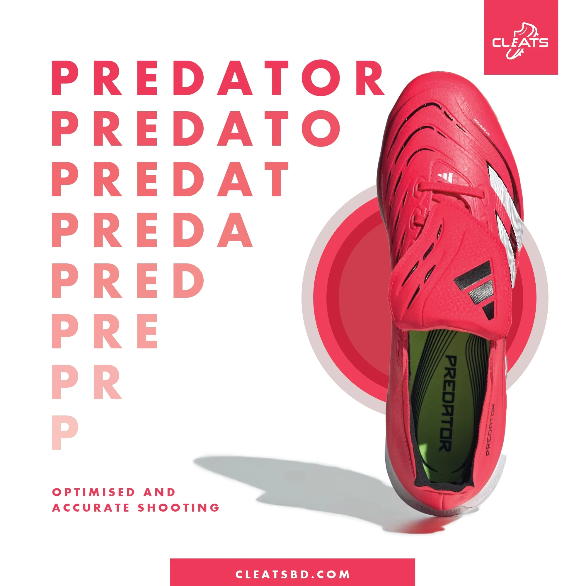 Turf adidas Predator League Fold Over Tongue Astro. The Premium Performance Football Shoes in Bangladesh. Play with your best foot forward in these adidas Predator League Fold-Over Tongue Astro Turf Football Boots. Featuring a Hybrid feel upper with grippy Strikescale elements for optimised and accurate shooting, these boots are infused with innovative confidence and comfort, allowing you to focus on the football. These boots were crafted for goals so you can step onto the turf knowing you'll score. Product Highlights: - Designed in a two tone colourway with distinctive branding for an iconic sign off - Lightstrike Cushioning - Hybridfeel 3D textured Upper with Strikescale elements - Composition: Upper: Hybridfeel 3D textured synthetic. Midsole: Strikescale grip elements on medial striking area. Sole: Rubber for artificial turf