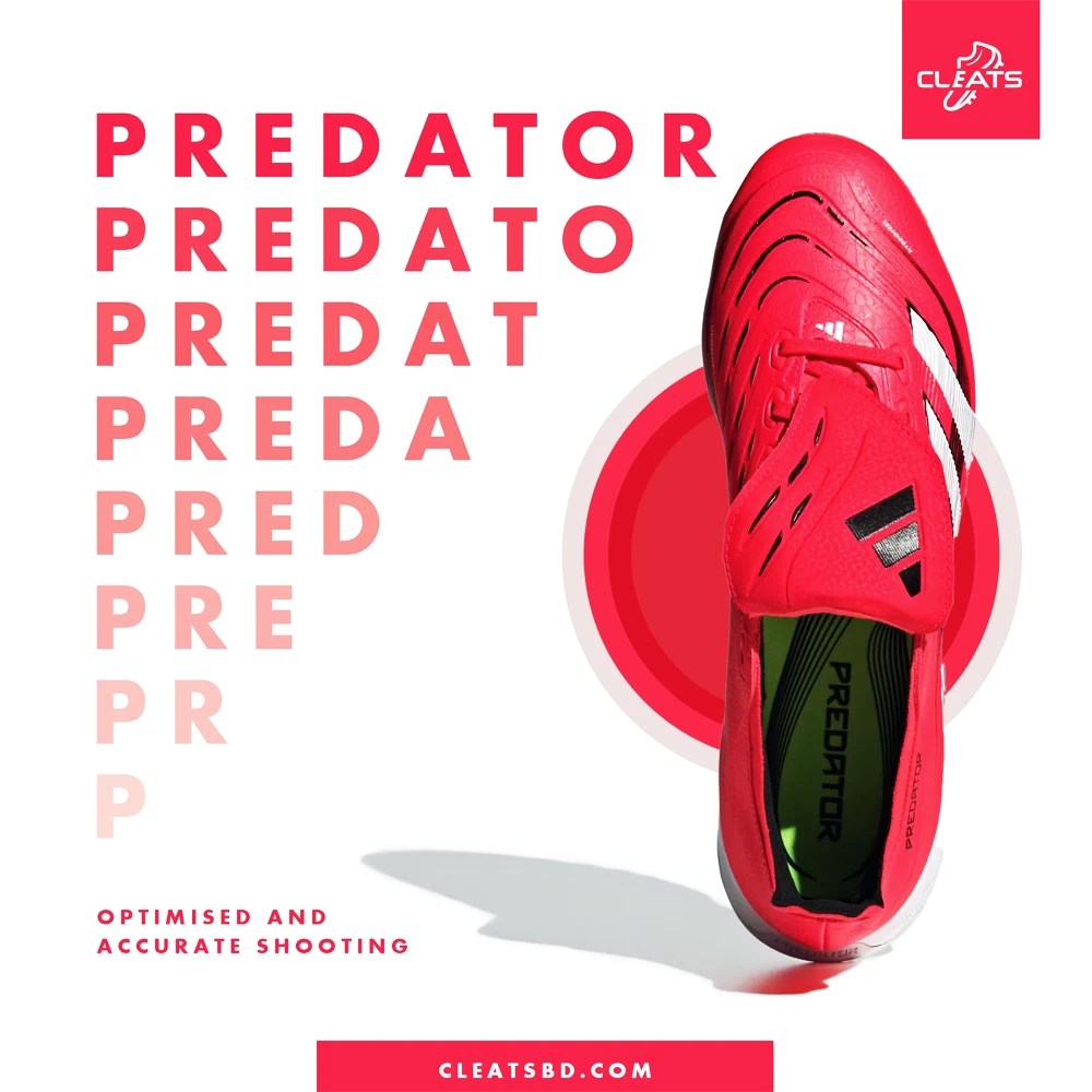 Turf adidas Predator League Fold Over Tongue Astro. The Premium Performance Football Shoes in Bangladesh. Play with your best foot forward in these adidas Predator League Fold-Over Tongue Astro Turf Football Boots. Featuring a Hybrid feel upper with grippy Strikescale elements for optimised and accurate shooting, these boots are infused with innovative confidence and comfort, allowing you to focus on the football. These boots were crafted for goals so you can step onto the turf knowing you'll score. Product Highlights: - Designed in a two tone colourway with distinctive branding for an iconic sign off - Lightstrike Cushioning - Hybridfeel 3D textured Upper with Strikescale elements - Composition: Upper: Hybridfeel 3D textured synthetic. Midsole: Strikescale grip elements on medial striking area. Sole: Rubber for artificial turf