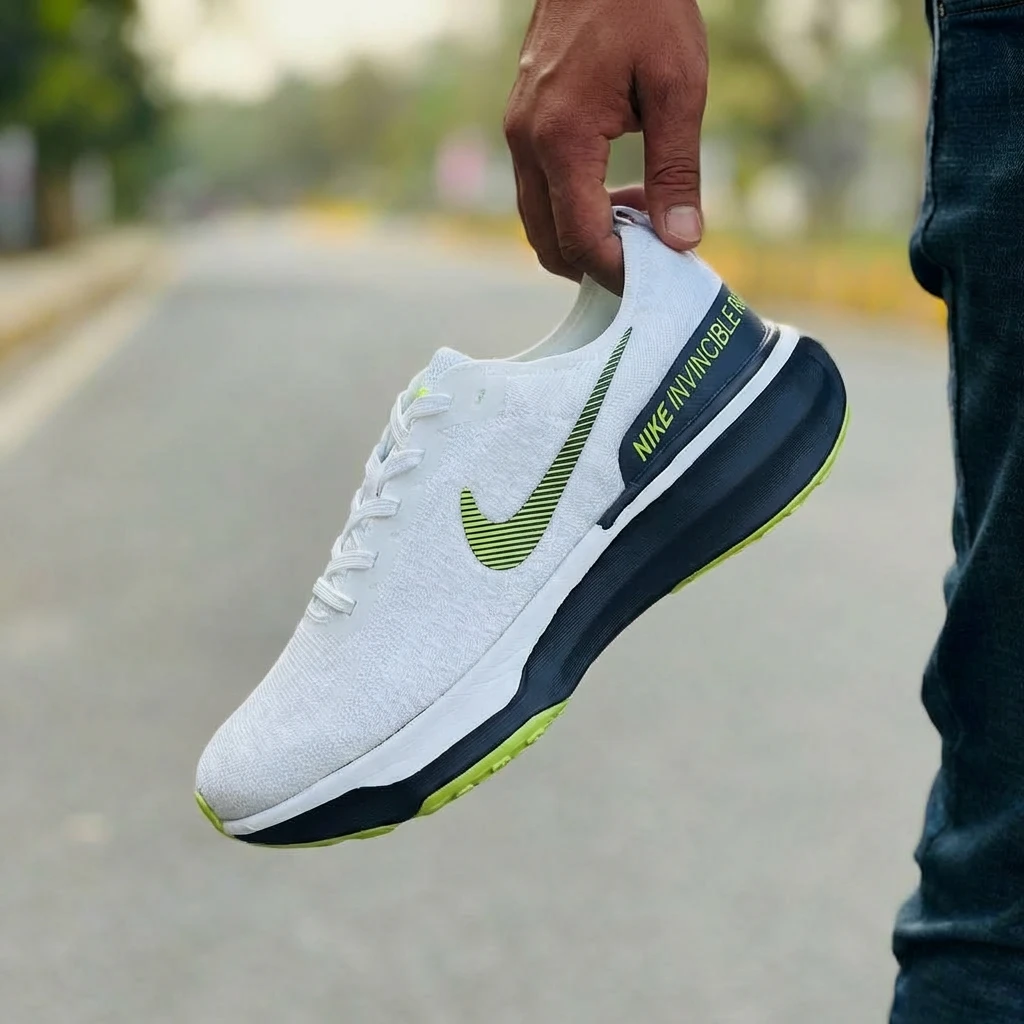 Step into effortless style with the ZoomX Invincible Running Shoes, presented in a crisp white finish. Subtle neon-green accents add a touch of vibrancy, while the bold black midsole grounds the look with modern edge. Built for comfort, these shoes are perfect for runners who value both performance and understated design. Whether on the track or the street, they deliver a sleek aesthetic that pairs seamlessly with any outfit.